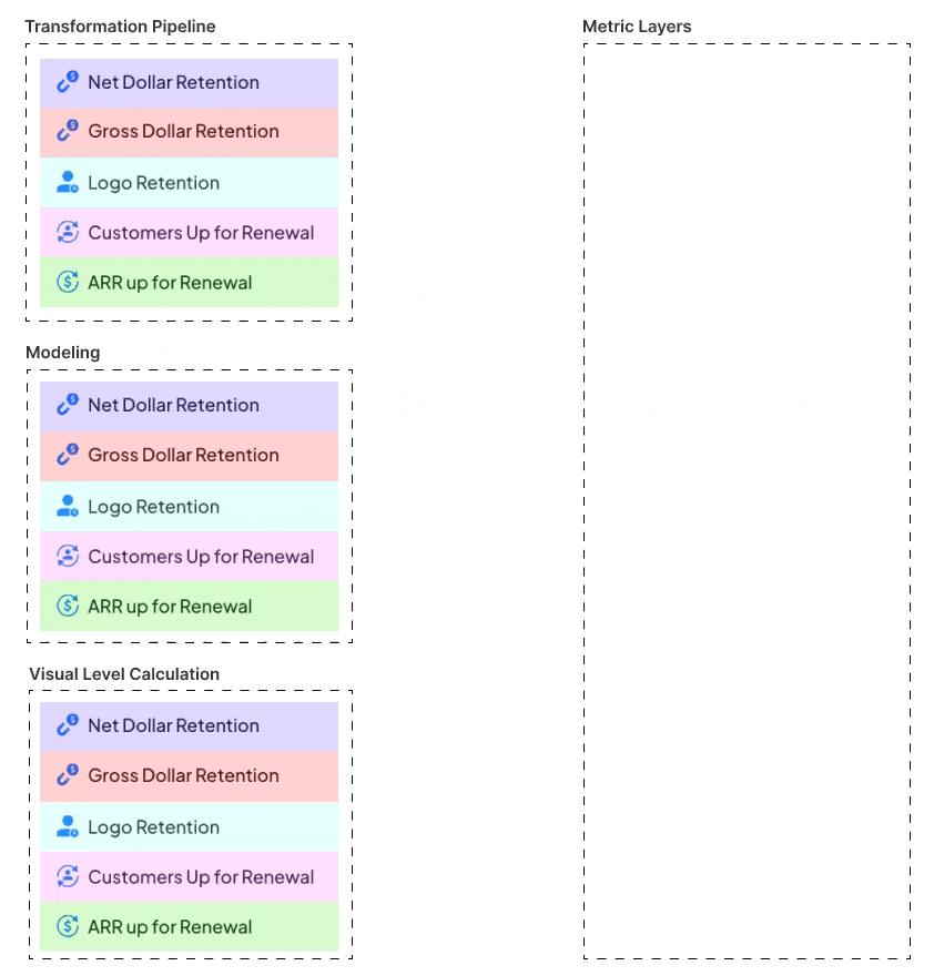 Metric Layers enable the ability to pull aggregation logic out and put them in reusable metrics. So instead of writing SUM(orders.quantity * products.price) over and over in different places, you store it in a metric and reuse it elsewhere. However, I would argue that these Metric Layers only offer that specific type of composition.