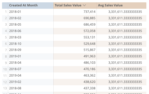 As a first attempt, many people think that they can just add another measure that averages on total_sales_value. Something like this: