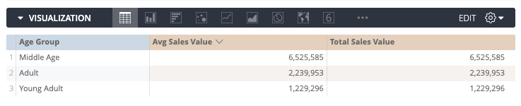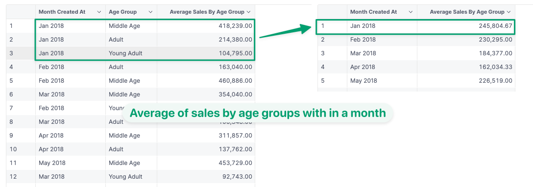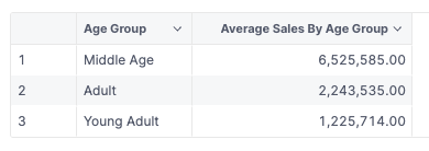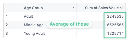 3. Using it with other groupings (dimension) would return the average sales by age groups within that grouping.
