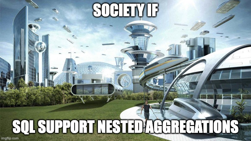 Though this seems like a contrived example, I wholeheartedly believe that this is where the SQL Standard stopped too soon before they struck gold. If they had continued and added more features in the same vein, SQL would’ve been a better language for defining metrics.