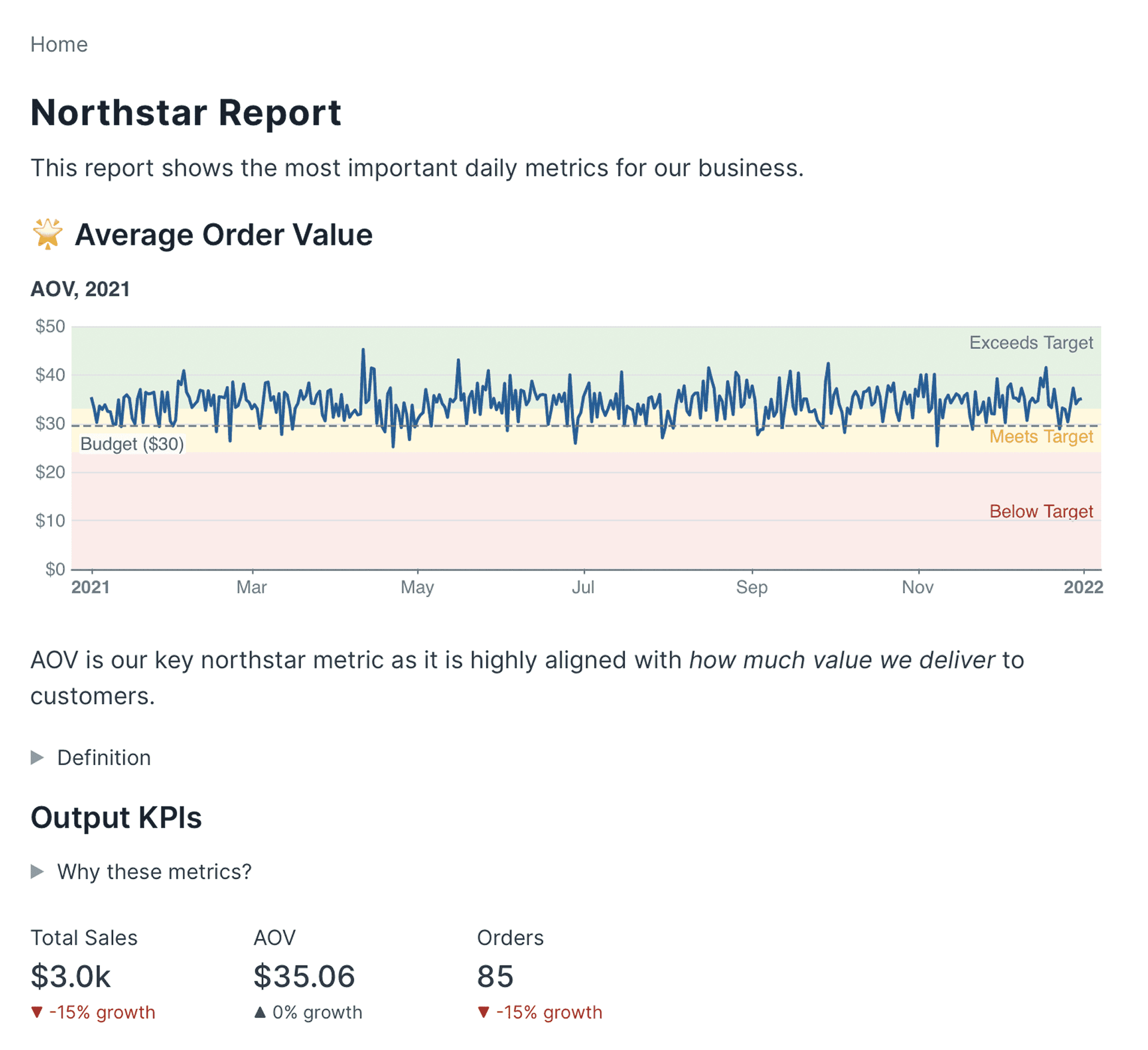 This is where tools like Looker and Holistics stand out. They let you define metrics once and reuse them across dashboards.