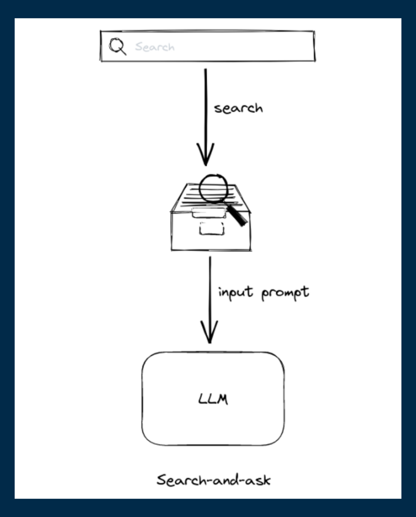 The second way is to use the search-and-ask method, which involves combining an information retrieval component (e.g. a search engine) with the language model and incorporating the retrieved information into the LLM’s prompt input. This method allows us to provide the model with domain-specific knowledge without actually fine-tuning the model itself.