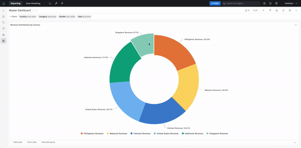 Taking a closer look, though, we'll find Singapore ranks the lowest when it comes to revenue. But Singapore is still too large a segment. Using Holistic's Drill-through feature, we can easily break down Singapore's revenue to a more granular level:
