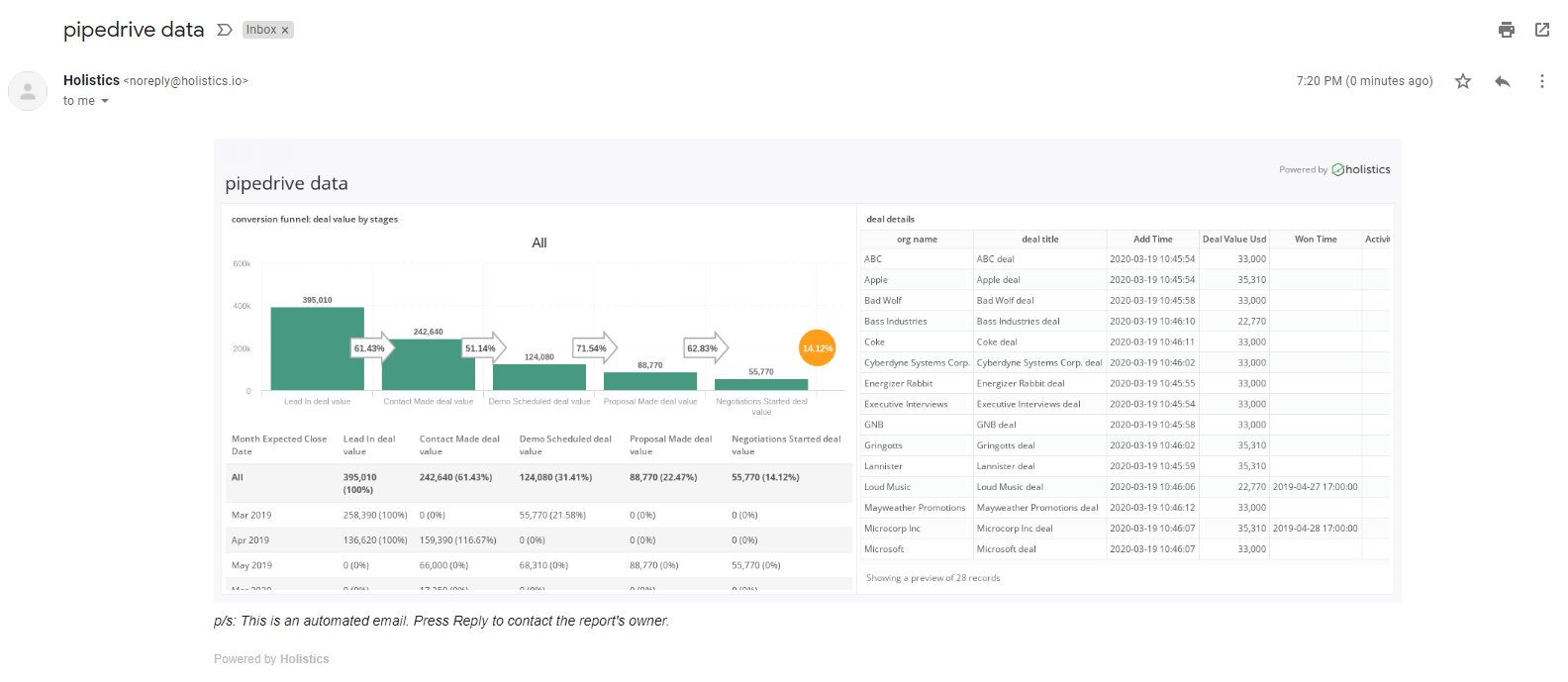 I hope this guide explains pretty much the basic concept behind Pipedrive analytics. If you want to check how we build our MRR Dashboard (Using Pipedrive & Holistics), please refer to this link