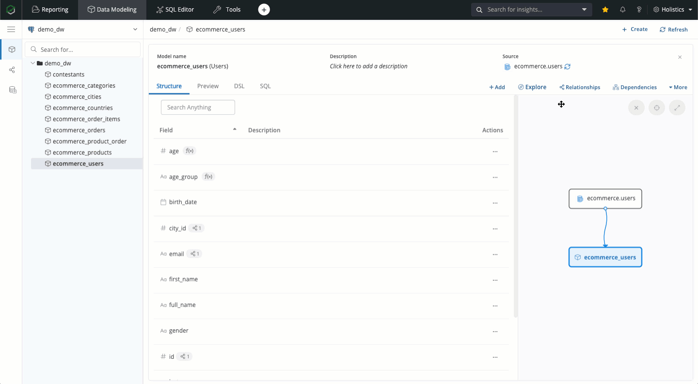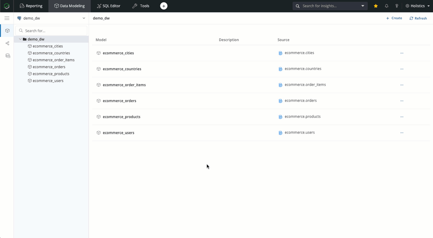 Data Modeling is the process of applying business logic to make sense of physical data. In Holistics, this process aims to: