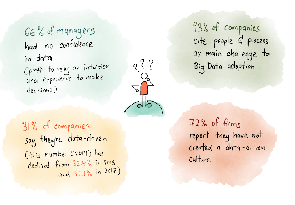 Is it any surprise, then, that a NewVantage survey conducted this year found that more companies in 2019 felt they were less data-driven compared to the same survey conducted in 2017?