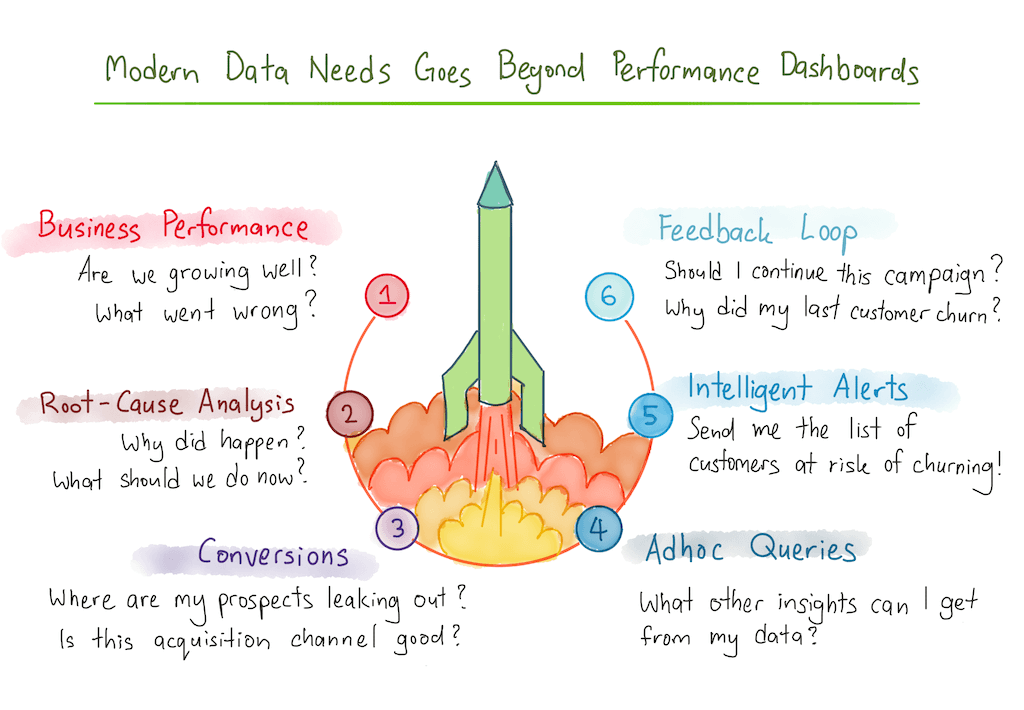 Most companies do this by creating reporting dashboards to track spikes and dips in their results. But such KPI reporting is static — it tracks activities that are unlikely to change within your organization. It is the bare minimum of what you can do with your data.