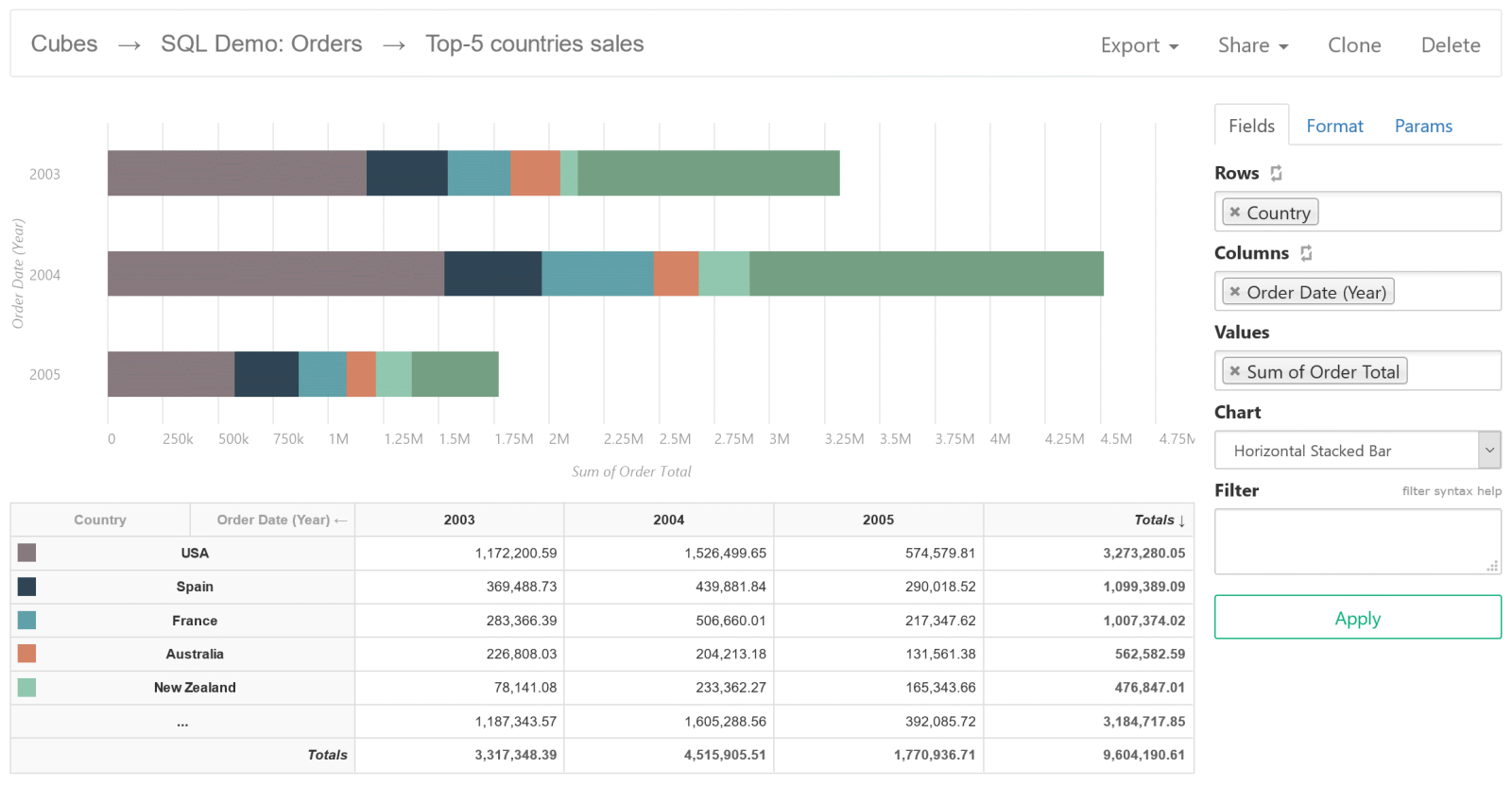 Seektable is a lightweight BI tool for ad-hoc & operational reporting with web-based pivot tables, charts, and usual tabular reports. SeekTable can connect to the most popular databases (SQL, MongoDB, ElasticSearch, XMLA OLAP), or can be used for self-service CSV data analysis.