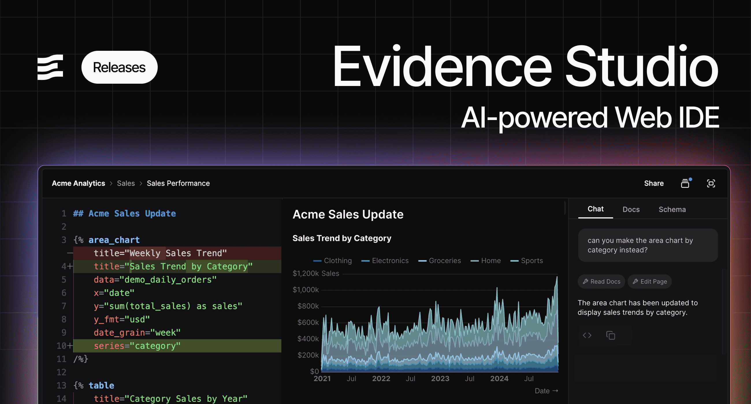 Evidence takes a fresh approach to BI: you write reports using a combination of SQL and Markdown, then render them into polished, shareable pages. Think of it as “BI for people who like Jupyter Notebooks”—except fully versioned and production-ready.