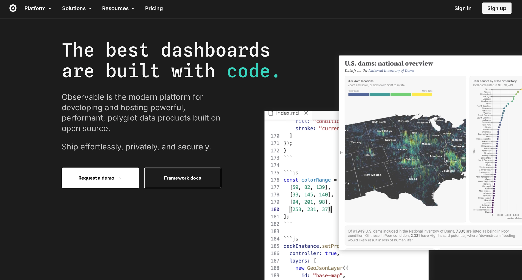Observable is a collaborative data platform created for data scientists and developers. It offered a shared platform for users to work together and create complex graphs, charts, and other visual representations of data.