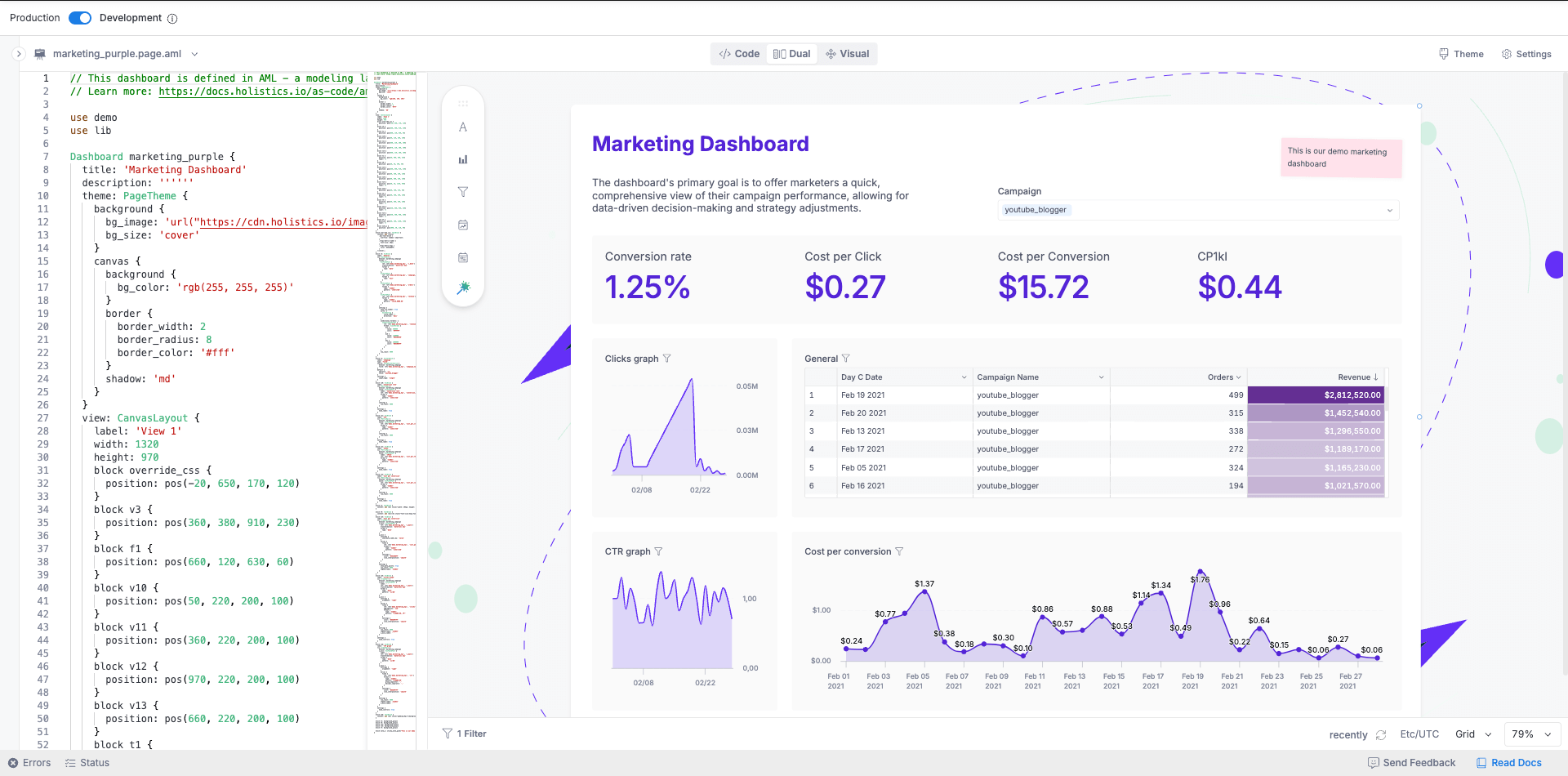 - Dashboard as code for full control over the dashboard