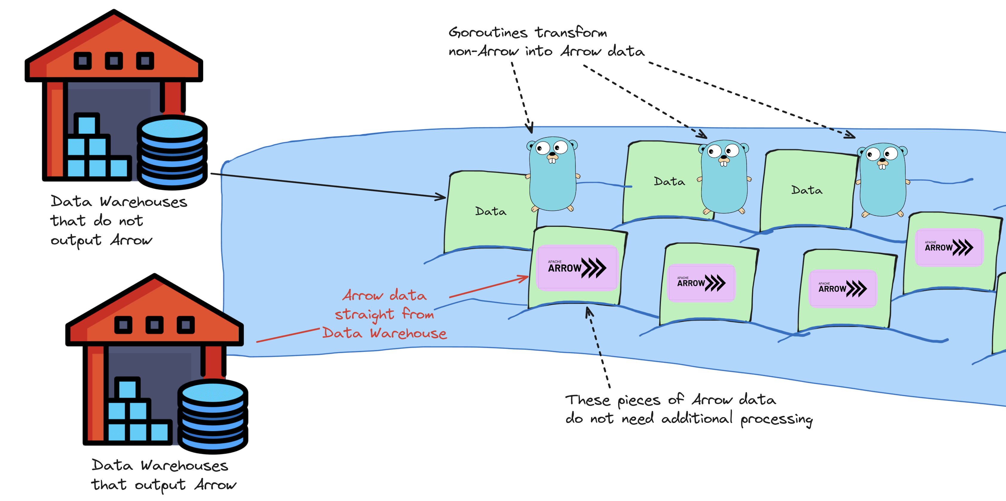 For data warehouses (e.g. BigQuery and Snowflake) that use columnar storage themselves and provide Apache Arrow as query output format, this also avoids the cost of “unloading” data from the data warehouses.
