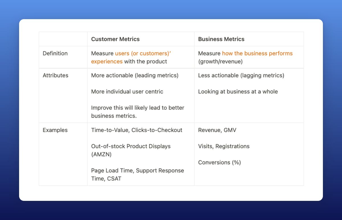 Business Metrics vs Customer Metrics